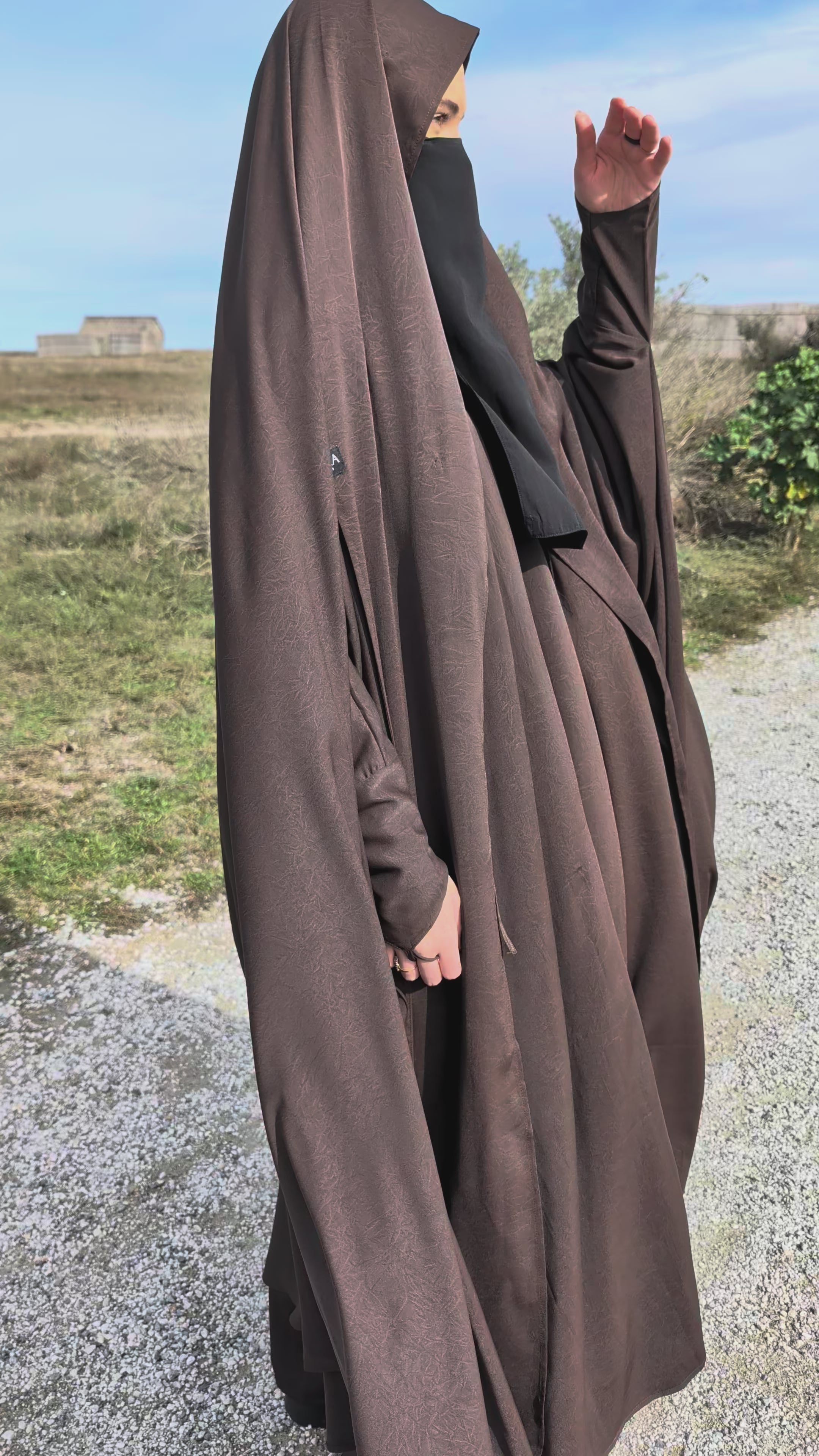 Le set Firmaa dark chocolate se compose d’une cape et d’une abaya, conçues pour allier pudeur, élégance et modernité.